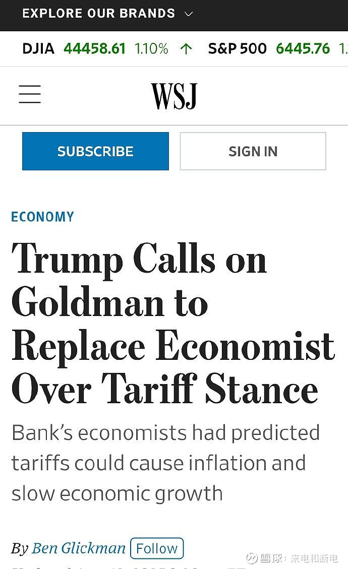 WSJ报道,在高盛团队称美国消费者可能会承担加征关税带来的大部分成本后,特朗普在社交发文猛批高盛,要求更换首席经济学家,还建议CEO大卫·所罗门干脆专注当一个DJ。