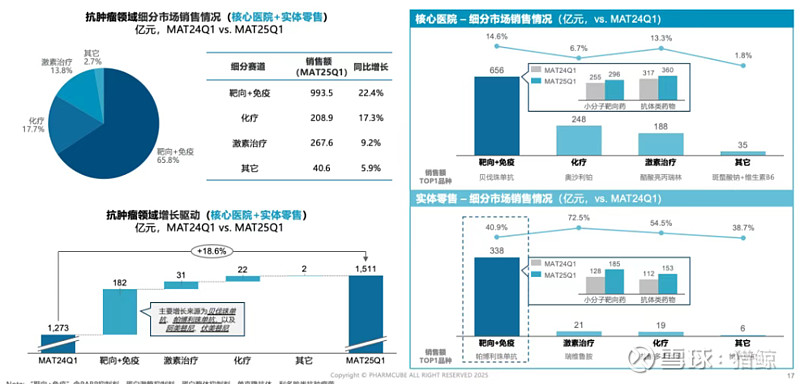 从药品种类上面来看,DTP药店以创新靶点的肿瘤药为主,其次增长最快的是心血管和慢病药品,比较符合目前老龄化的用药增长情况。院外销售最多的是未纳入医保的Keytruda,并且K药在没进医保的情况下仍然是这个靶点的销量前五,可见医保已经不是唯一出入了,临床数据、适应症、学术投入更重要。