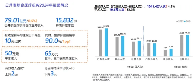 通过集团化采购,药品、耗材和设备成本得到了有效控制。2024年数据显示,药耗成本占比下降3个百分点,2025年上半年药耗成本占比继续下降了2个百分点,这样的成本优化让旗下医院能更从容地应对运营压力。而通过学科帮扶与资源共享,推进医教研一体化、加强学科带头人引进培养等抓手,也能够提升各医院学科水平、诊疗技术。