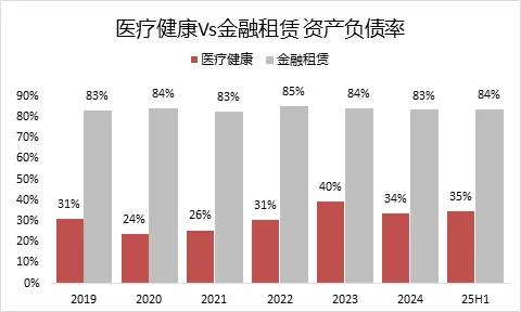 看资产负债表,医院集团业务相比金融租赁业务,显得“赚钱更稳健”。