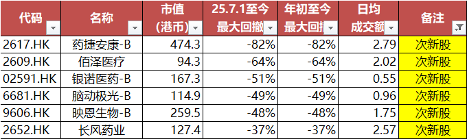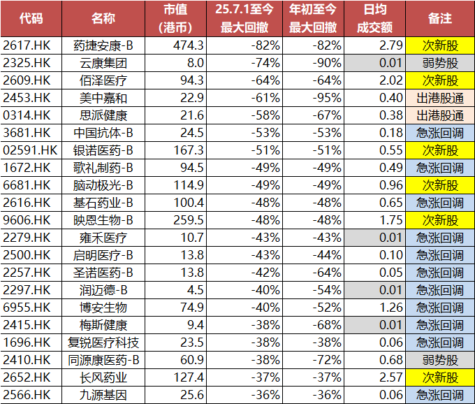 附录:H股医药中最大回撤超过35%的医药股