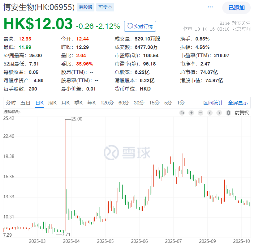博安生物:话说回来,博安市值不算小,只不过上市之后,市场的关注度低。但一根最高3倍涨幅的大阳线,彻底激活了这个票。从基本面看,手握贝伐、地舒、度拉糖肽以及阿柏西普等多款生物类似药,产品线还都比较扎实。然后临床早期几款ADC和双抗创新药都比较有特色。总体看,给到50-100亿市值区间没啥大问题,往后看就是如何迈过生物类似药集采这关,以及早期创新药项目的临床推进。但说实话,姜华总带领的务实风格的博安生物,却是被牛市小作文激活,总感觉有点拧巴!估计未来很长时间,股价波动都会在大阳线的范围内波动了!