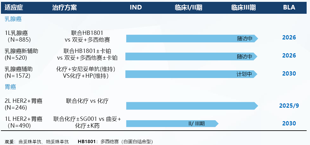 后续HER2双抗在1L胃癌以及乳腺癌的1L、新辅助、辅助等适应症都进展到临床后期了,现在看成药概率很大;