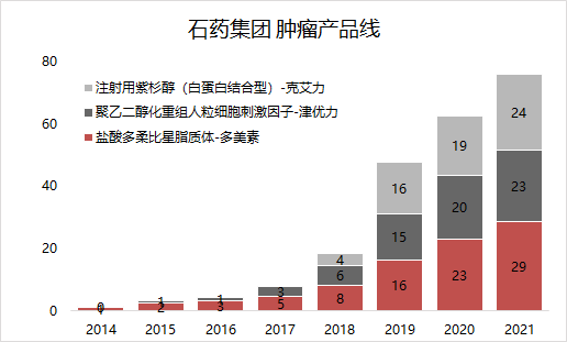 石药集团虽然肿瘤产品线受到集采影响很大,现有规模只有20亿级别,但从丰富的在研管线矩阵看,石药仍然是国内在研产品最丰富药企巨头。