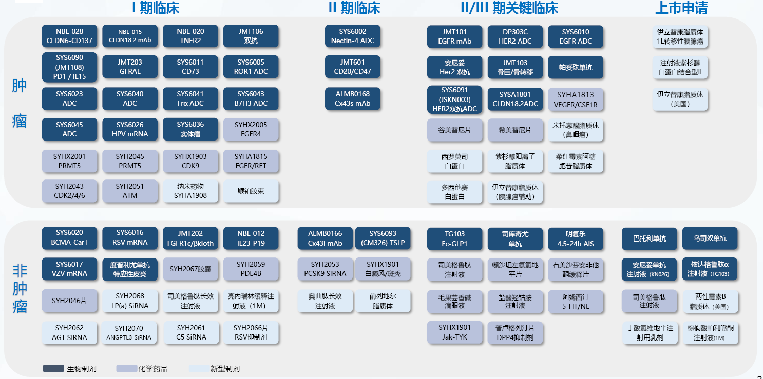 除了上述几个品种,从上海药物所引进的希美替尼在2线食管鳞癌进入到3期,多靶点JAK抑制剂SYHX1901的银屑病也进入到3期以及GLP-1产品群也进入到3期。