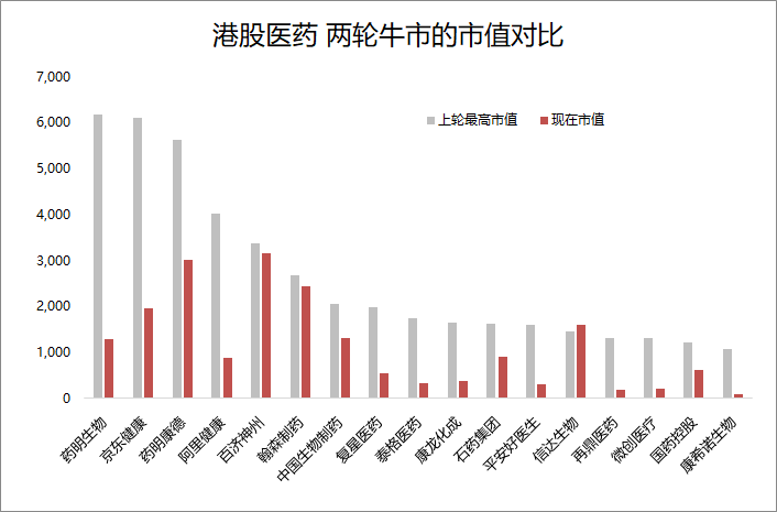 港股上市了京东健康、阿里健康、平安好医生三个互联网医疗巨头,无论是线上卖药,还是互联网问诊,这几家都是行业真头部,上一轮也给了几千亿市值,但互联网医疗行业并没有像外卖、打车等其他互联网行业那样改天换日,虽然几家也有不错发展,但司牛熊转换之时,回调幅度巨大,现在市值即使上涨了2-5倍后,仍然离上一轮牛市顶点仍然很远。