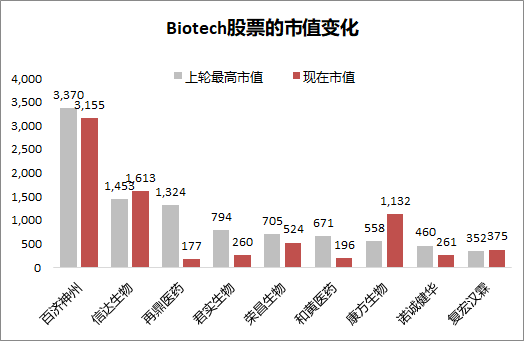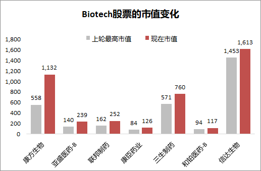 头部Biotech,我理解是 给到中国头部创新药企业的市值定价也差不多,当然上一轮手里创新药资产还在早期,给的溢价更多,这一轮很多创新药企逻辑开始兑现了,但最后市值级别差不多。