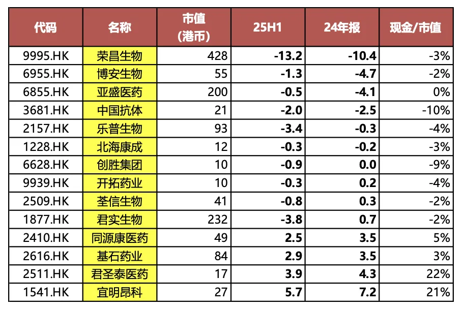 港股医药股中,有部分药企研发烧钱比较厉害,导致在25年初的熊末牛初的时候,已经有点捉襟见肘了,最典型的就是荣昌生物,在24年下半年就因为市场担心现金流枯竭,而出现过暴跌。