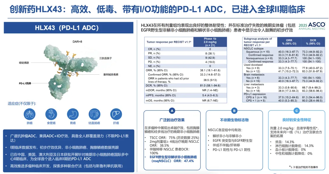 复宏汉霖的HLX43应该是所有还没有BD处于的产品中,有望拿到最大首付款的潜力重磅品种。这个产品的特点就是IO+ADC的技术趋势+广谱适应症+部分验证性数据不错=超级重磅潜力。