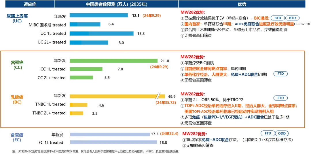 所以,迈威的2821作为国内临床进度最快的Nectin4 ADC,在全球临床竞争中,需要考虑尽量避免与维恩妥尤单抗直接头对头,而海外药企引进这款药物的时候也会重点考虑这个方面的问题,要么是尿路上皮癌能做到BIC,要么在三阴乳腺癌能够有所突破。