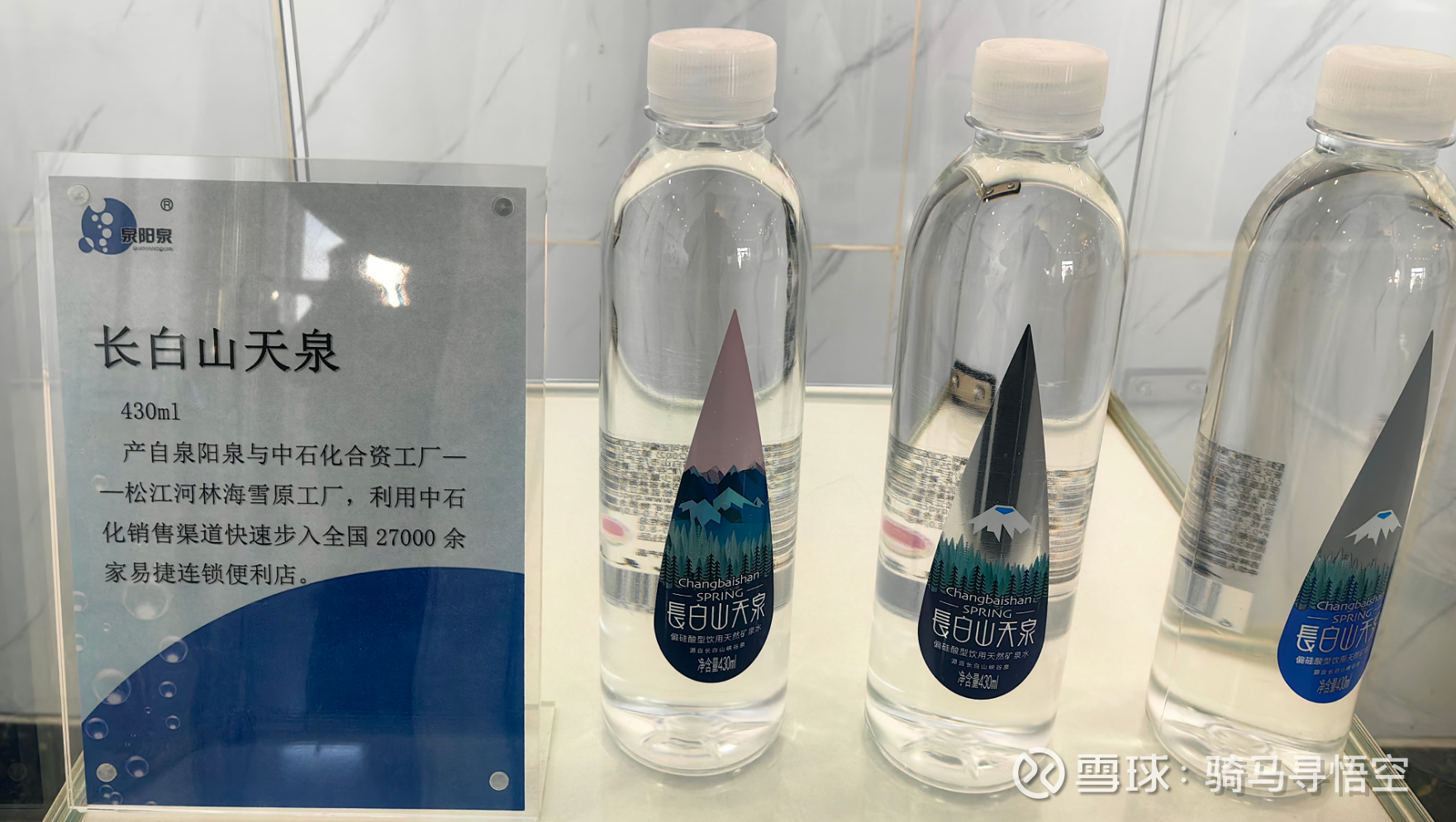 泉阳泉的矿泉水产品,品类有十多种,每个泉眼都很珍贵,水的特点也不同。其中高端产品,含气天然矿泉水,从自涌泉出来自带丰富的气泡,非人工添加,气泡绵密,口感极佳,见下图