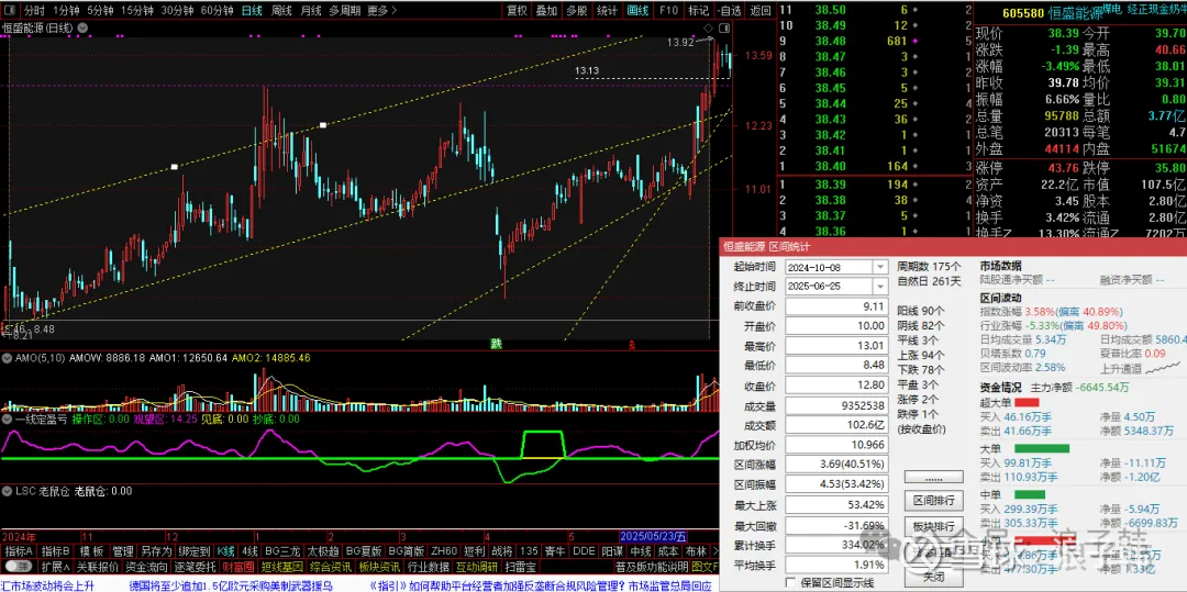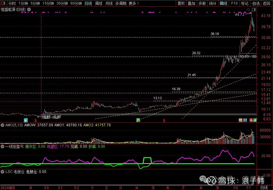4、恒盛能源中期走势形态(本轮结构性行情2024年9月23日至44.72元产生日,整体用时277天,高点达到5倍)!