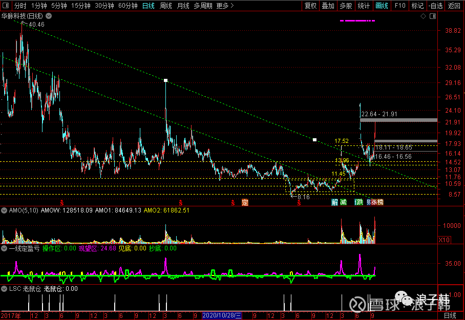 6,大家看,刚才的全图,华脉科技的二板,基本上都没有过20元的,在启动的11元,13元,15元左右,上攻的第二板,都仅在15元左右,离20元都很远,所以,安全边际存在,所以,上攻也就非常容易。