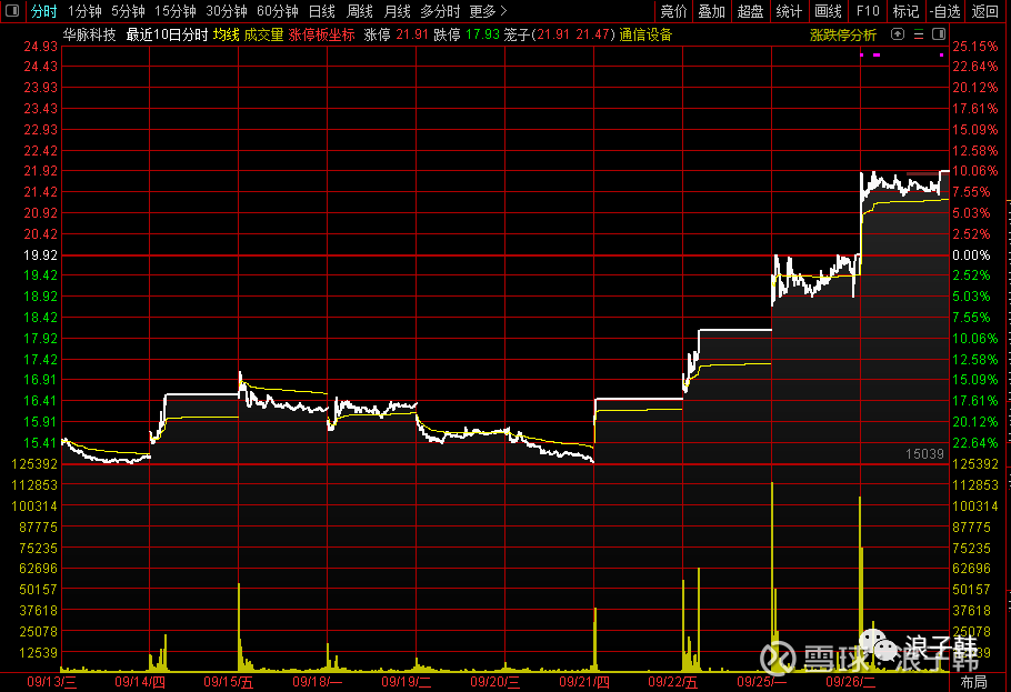 20230926华脉科技2023年09月13日至9月26日的10个历史分时走势图13