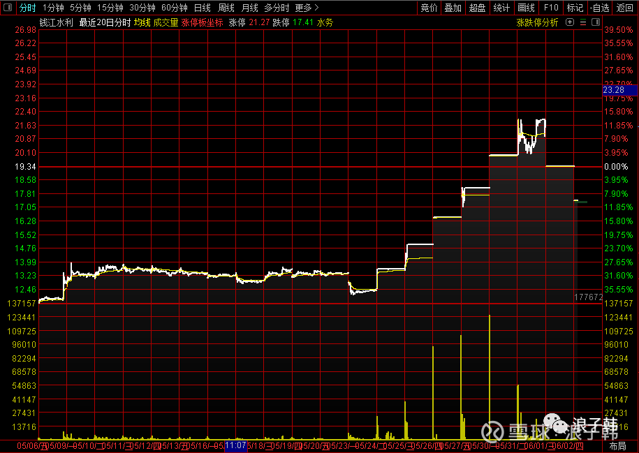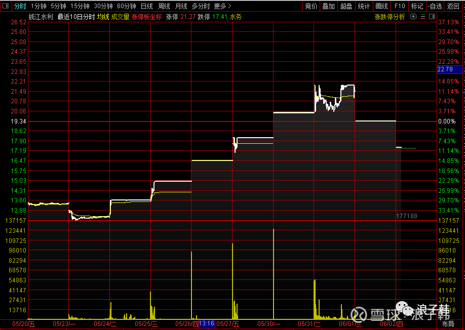 20220604钱江水利2022年5月6日至6月2日的20个历史分时走势图04