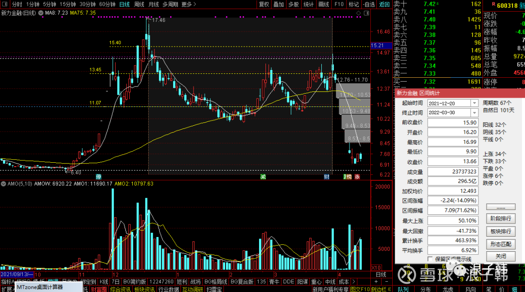 20220415新力金融整体派发周期合计67天区间K线统计图07