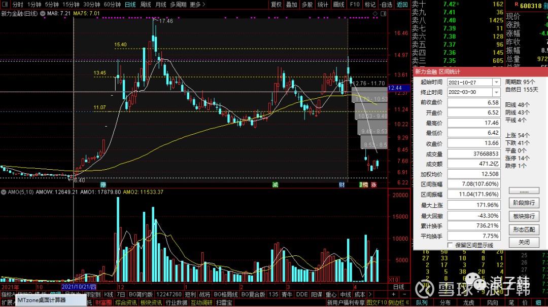 20220415新力金融整体推长周期和派发周期合计95天区间K线统计图05