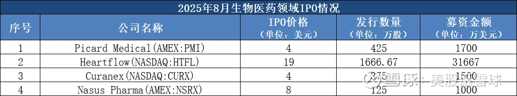 8月,有4家公司生物医药公司以IPO的方式赴美上市,比传统的清淡暑期档,数量略多。