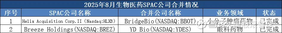 2025年8月,在生物医药领域,有4家公司采取IPO形式上市,2家公司通过SPAC合并上市,1家公司以转板形式上市。