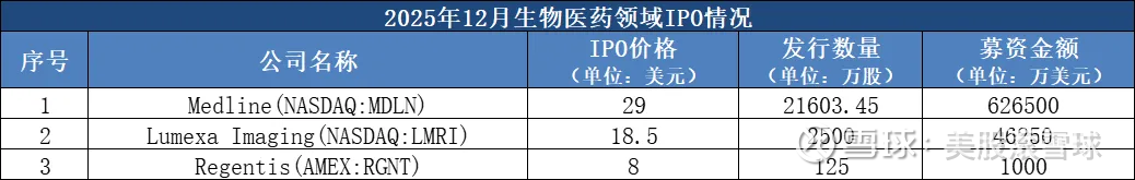 2025年12月,在生物医药领域,有3家公司以IPO的方式赴美上市。