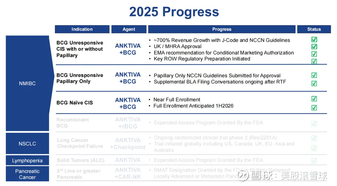 在此期间,ANKTIVA®与卡介苗(BCG)联合用于治疗BCG无反应的非肌层浸润性膀胱癌(NMIBC)乳头状病变的上市申请被FDA拒绝,同时,2025年9月,FDA批准了强生的BCG无应答、携带CIS的成人NMIBC患者的竞品药物,对ANKTIVA形成显著竞争压力。
