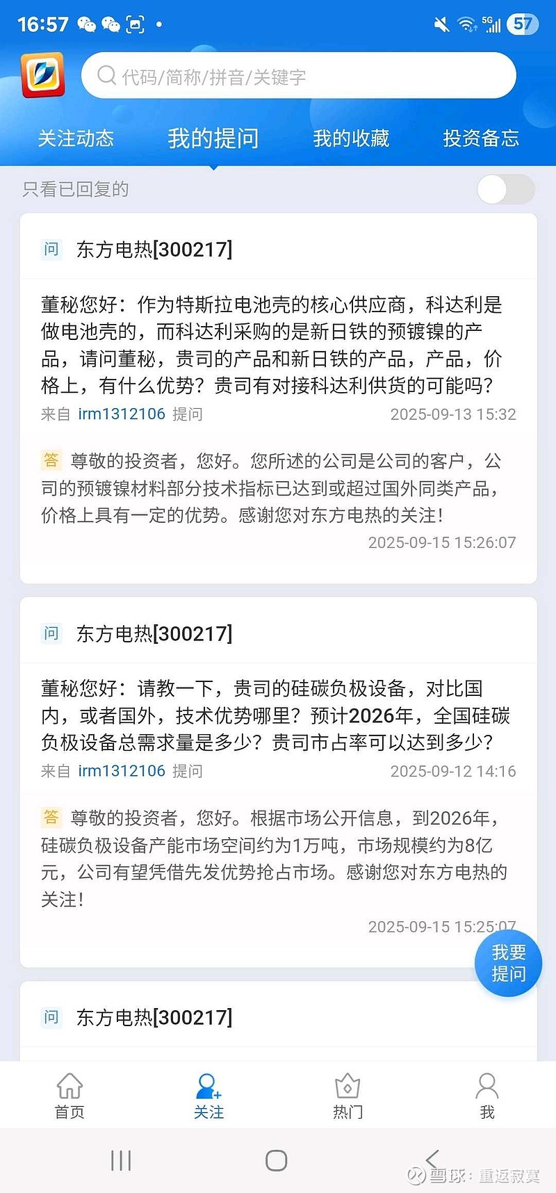 $东方电热(SZ300217)$ 我提问了两个问题第一:是否向圆柱电池壳的核心龙头,科达利,供货,回答是,科达利是公司客户,间接说明了,预镀镍,国内开始逐步放量第二:硅碳负极设备,2026年市场规模,8亿元,26年是硅碳负极设备元年,0_1的过程