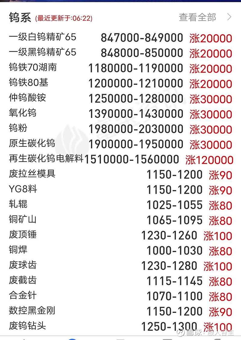 钨价继续上涨!有点麻了。港股佳鑫国际资源昨天最高涨幅超30个点,成为世界第一家人民币计价的百元股,市值突破五百亿。昨晚美股Alm涨十二点,突破二十美元,也成了人民币百元股。市值超过三百亿。相比这两家公司,国内五大钨神,比如中钨高新,厦门钨业,涨幅似乎落后。毕竟从含钨量上来看,中钨和厦钨更高。