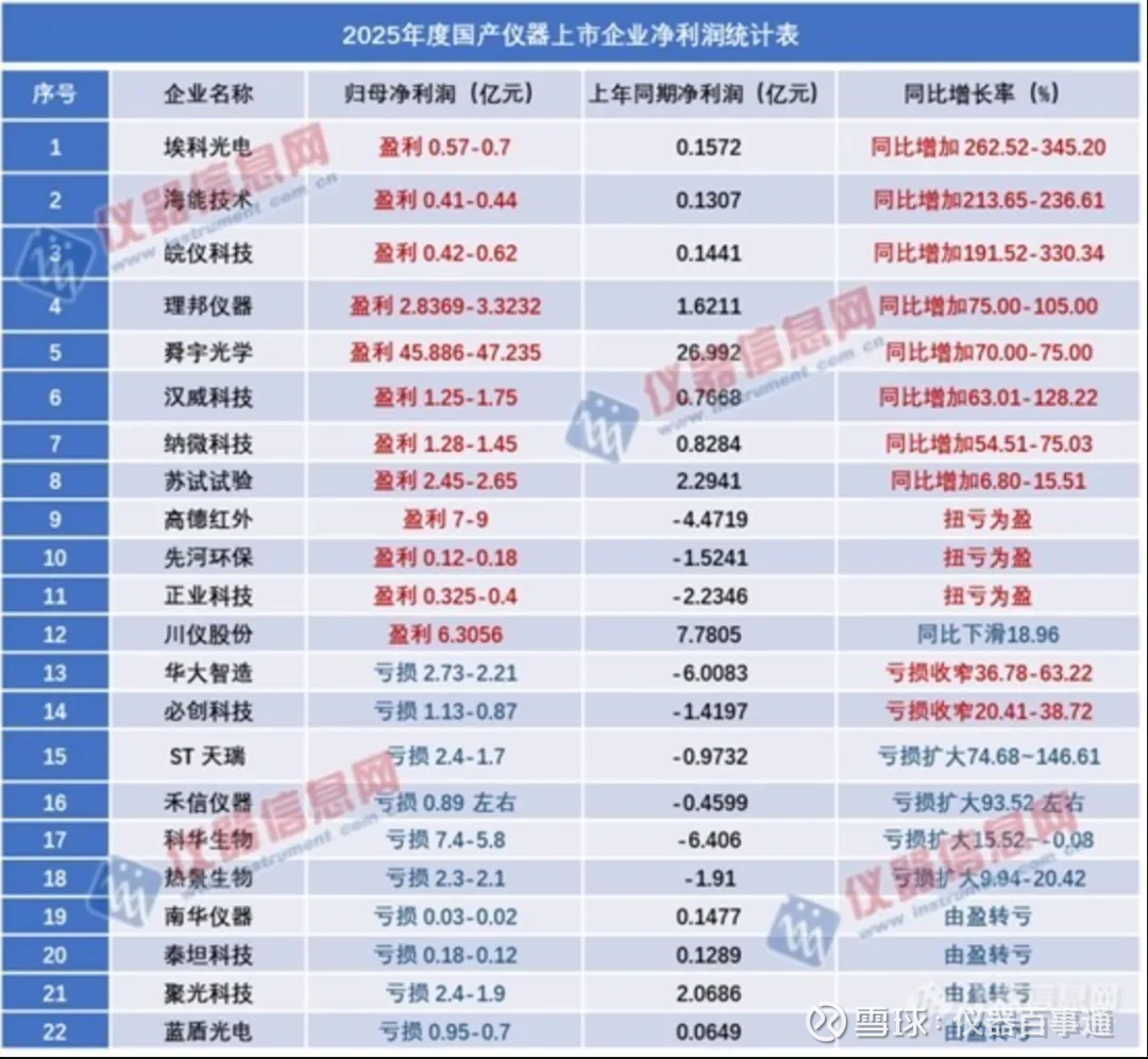 统计22家国内上市仪器公司2025年业绩预告数据,拆解各企业业绩变动核心原因,剖析行业发展现状与趋势,为市场参与者提供参考。