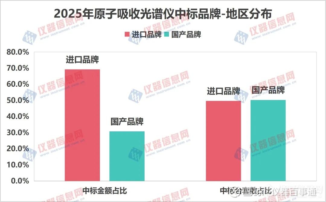 据统计,2025年原子吸收光谱仪(AAS)公开中标信息总计近400条,涉及仪器采购近450台,总金额接近2亿元,仪器均价约为33万元。在这一数据背后,不仅是市场份额的简单划分,更折射出进口品牌与国产厂商在不同应用场景下的战略分层。