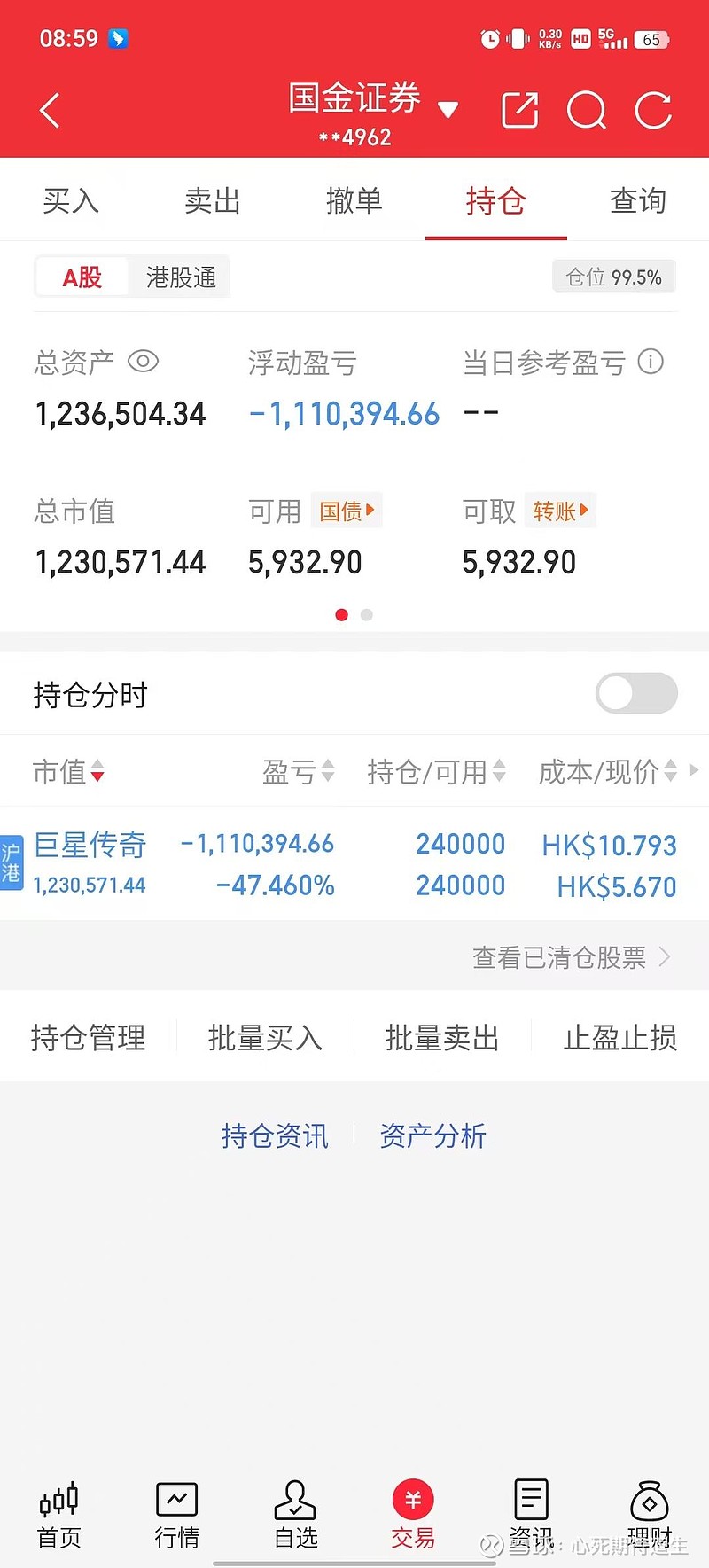 10月份其实应该止损,我现在复盘兴许就是运气挣的那笔40多万让我有恃无恐了,迟迟没下手,如果能减仓一半结果都是好的,但没有如果,一开始梭哈就是问题,原计划是退出港股,回归大A,另外还款消费贷,去年结果好就是因为资金在还款借款之间灵活,去年我融资和消费贷就是辗转腾挪,今年在港股没有余地,一次梭哈没有补仓了,今年在港股没有余地,一次梭哈没有补仓了