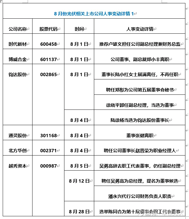 “金九银十”的求职季即将来临,叠加光伏产业调整进入“决战”时刻,光伏相关上市公司8月份的高层调整尤为密集。