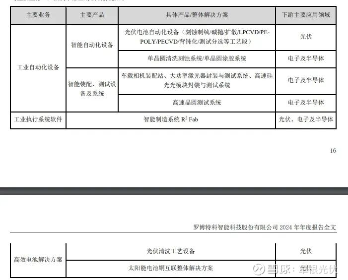 据2024年报所载,罗博特科是一家研制高端自动化装备和基于工业互联网技术的智能制造执行系统软件(R2Fab)的高新技术企业。公司拥有完整的研发、设计、装配、测试、销售和服务体系,为光伏、电子及半导体等领域提供柔性、智能、高效的高端自动化装备及R2Fab系统软件。目前公司产品主要应用于光伏电池领域。