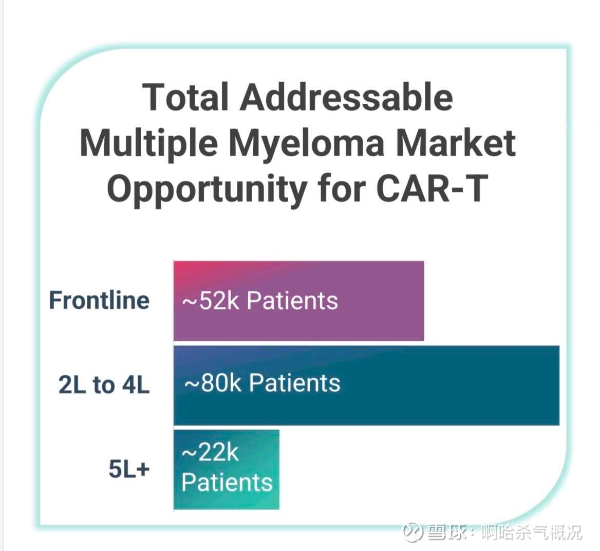 全球5w一线目标患者,2-4l存量8w,5l+存量2w。这里的2-4l存量里面有很大比例是dara耐药的。假设有一半吧,这里也有4万人了。只要能覆盖其中25%符合cart的患者就能有10000针了。而DRd首年的pfs率为93%,5年pfs率50%,所以每年也总有小几千人耐药进展到二线。从这点来判断,即便cilta只做dara耐药,空间也是足够大的。其实这个从明年强生继续联合投资1.5亿美金扩大比利时跟特的工厂也可以得到侧面验证。所以即使强生临时转向全力扶持tec+dara,放弃原先预计27年底2w针产能的计划,等比利时扩产完每年一万多针总是确定的,扣除良率维修整备时间,27年起就具备了满产40亿+营收的能力。综上所述,dara耐药市场在未来数年都是庞大的,足够覆盖每年一万针产能,至于能不能达到是强生销售能力的事,起码跟态度是无关了,反正这些dara耐药tec+dara也做不了。传奇自己只能主导130家academic,大头还是得靠强生从5500多家社区医院教育医生转介绍。