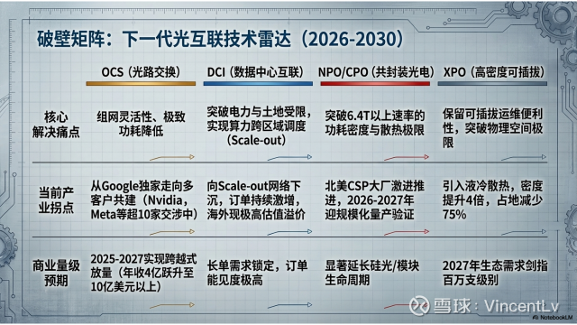 结合前面几条线看,无论是 OCS、DCI、NPO 还是 XPO,它们都在不同程度上解决了当前光模块行业的痛点。一旦相关技术开始被下游客户强力推动,订单和前景其实都是非常明确的。现在我们看到的就是 OCS 供应趋紧、DCI 往数据中心内部下沉,以及 NPO、XPO 都出现非常明显的订单信号。所以我们才会讲,当前实际上是光非常好的一个时代,是需求快速爆发的阶段。