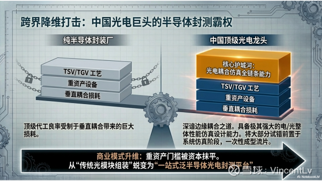 还有一个趋势,我也想跟大家分享,就是光这个行业其实已经在慢慢切入一个更微观、更偏半导体工艺和制造的领域。这会是下一代光学竞争里非常重要的一部分。不管是旭创、新易盛、天孚,还是未来的模块和器件厂商,如果想在全光互联时代拿到更高份额,半导体封装、工艺、仿真这些能力,都是绕不过去的。
