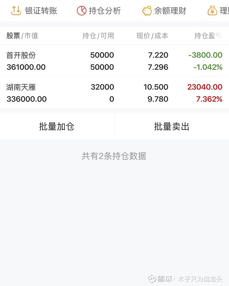 首开股份600376湖南天雁600698首开股份继续持有,几天做起来的阳不够一天砸的,出不来我就按兵不动看看要整什么事。湖南天雁今日建仓,下周大哥长城能带动他跟上大哥的脚步吗期待一下。$首开股份(SH600376)$ $湖南天雁(SH600698)$