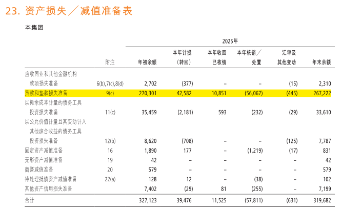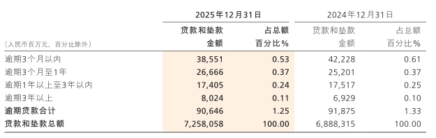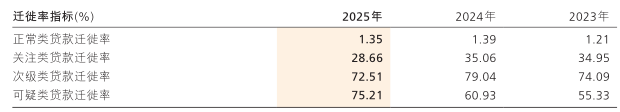 2025年逾期贷款率从1.33%降低到1.25%这是比较好的转变。逾期贷款通常比不良贷款率更具前瞻性。从逾期贷款上来看,资产质量趋势变好。