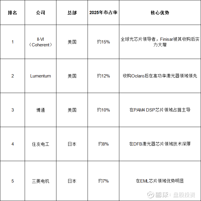 特别说明:根据QYResearch数据,全球光通信芯片(含光芯片和电芯片)市场前三大厂商(II-VI、Lumentum、博通)合计占有约47% 的份额