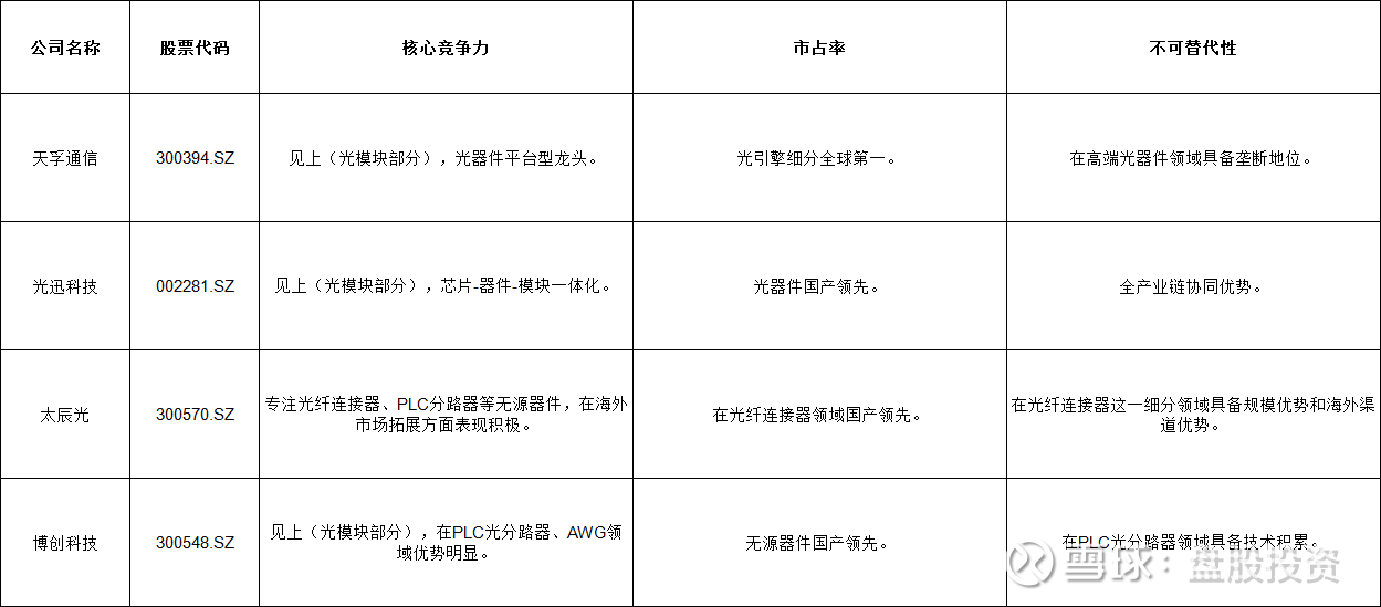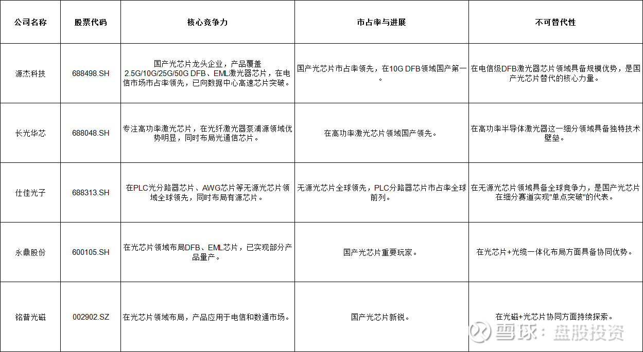 这是光通信中技术难度最高、国产替代最迫切的环节,我们在上一轮已详细梳理。