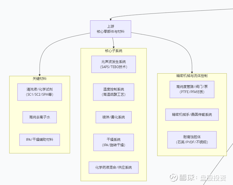 上游:核心零部件和材料,包括精密机械件、流体控制系统、传感器、清洗液等