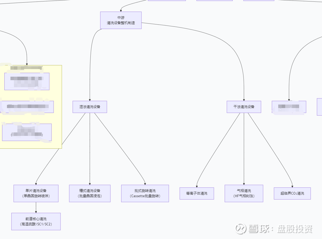 中游:设备整机制造,按技术路线可分为湿法清洗和干法清洗两大类,进一步可细分为单片清洗、槽式清洗、批式清洗等