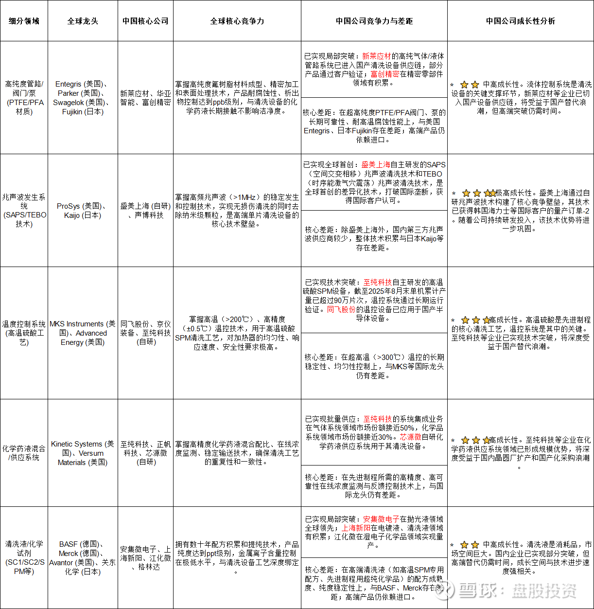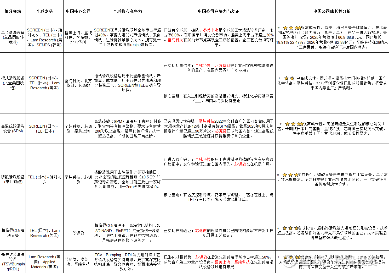 根据行业研究数据,清洗设备是半导体设备中国产化率最高的环节之一,单片清洗设备国产化率已超过30%。随着国内晶圆厂扩产和国产替代政策推动,该领域市场替代空间持续扩大。