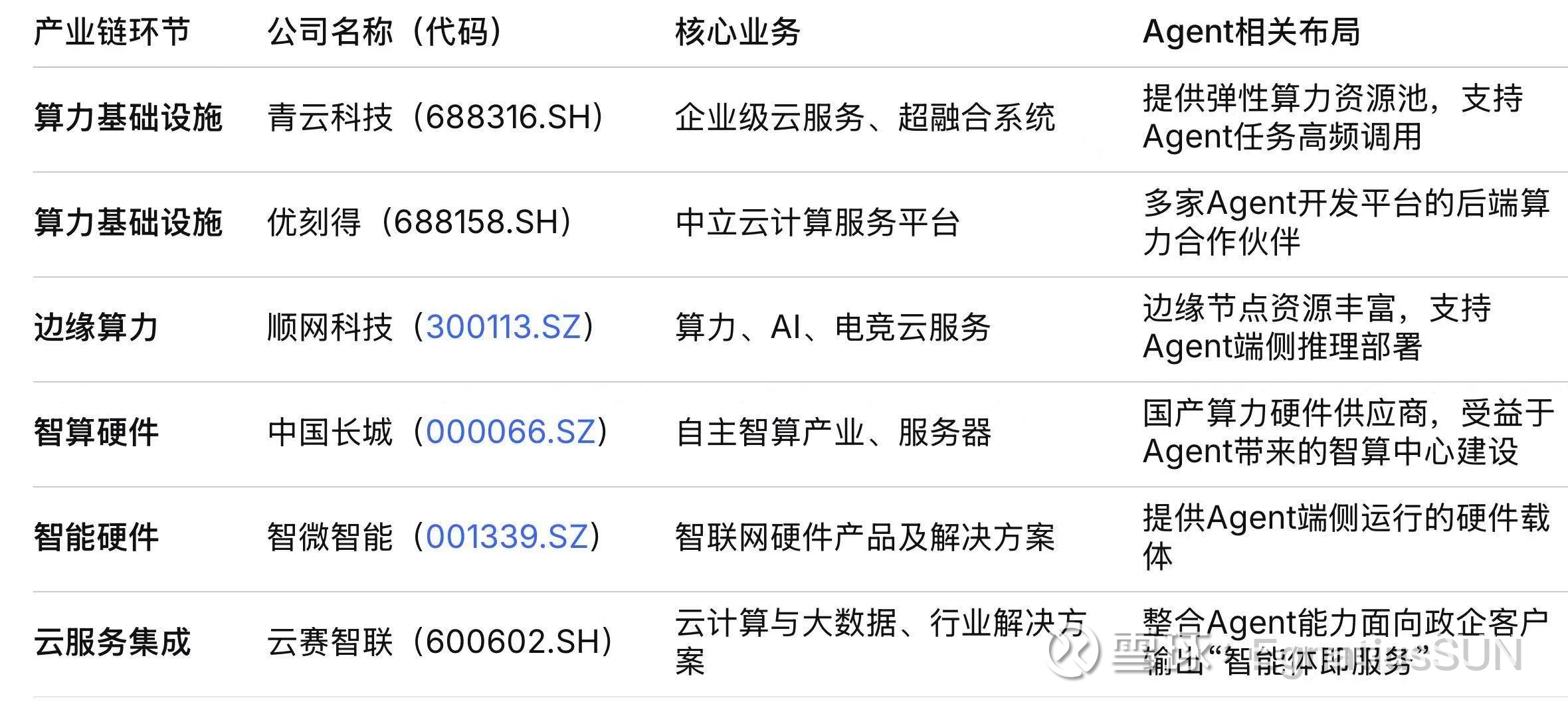 “算力杠杆”最大的基础设施方:每一次任务执行都是算力消耗,Agent渗透率的提升将直接转化为算力服务商的收入增量。在算力资源趋紧的背景下,拥有确定性算力储备的公司具备更强的议价能力。