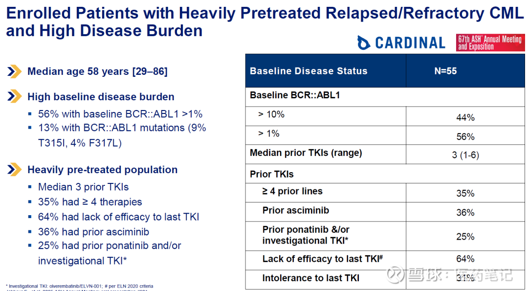 入组患者基线如下,35%的患者接受过4线及以上治疗,36%的患者接受过Asciminib治疗。