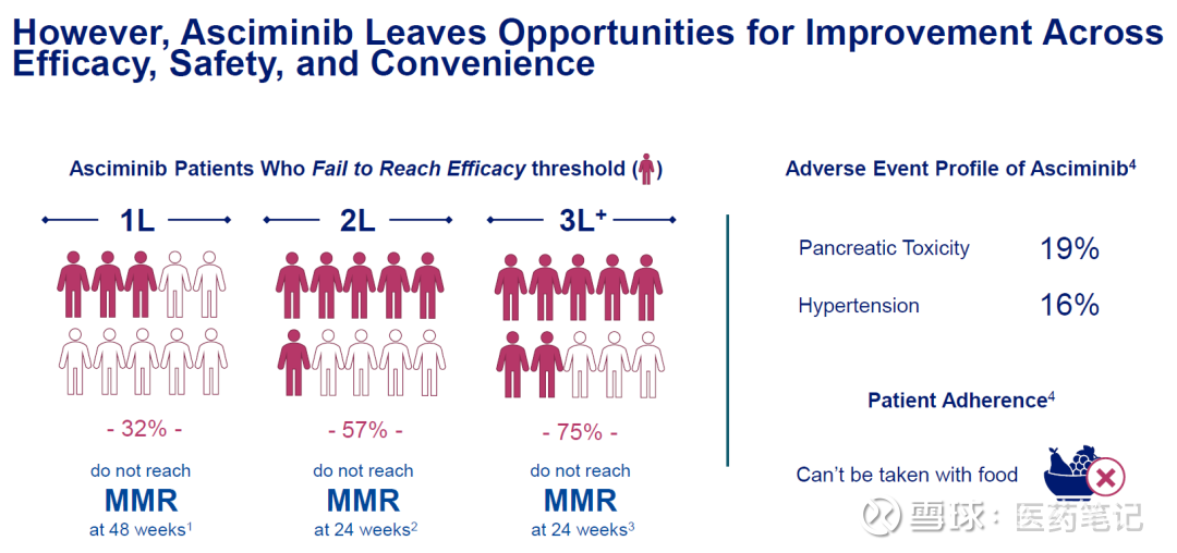 不过,CML领域仍然存在严重未满足临床需求,Asciminib治疗仍有很多患者无法达到MMR(主要分子学反应)。