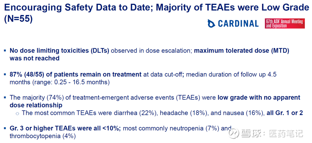 TERN-701耐受性良好,3级及以上副作用不到10%。