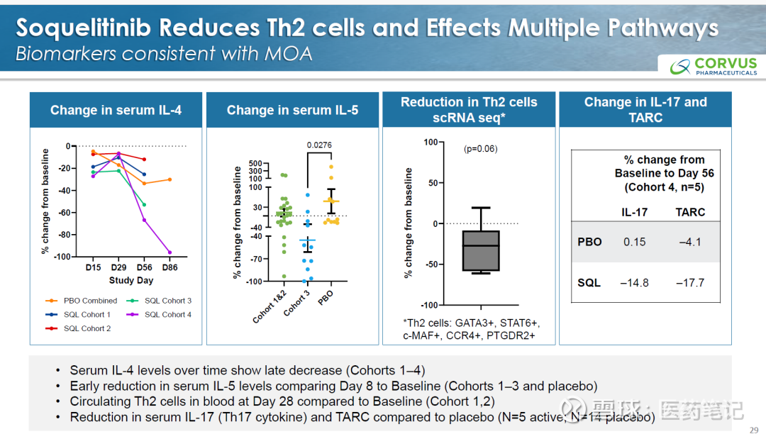 Biomarker显示Th2、Th17显著下降,与其作用机制相一致。