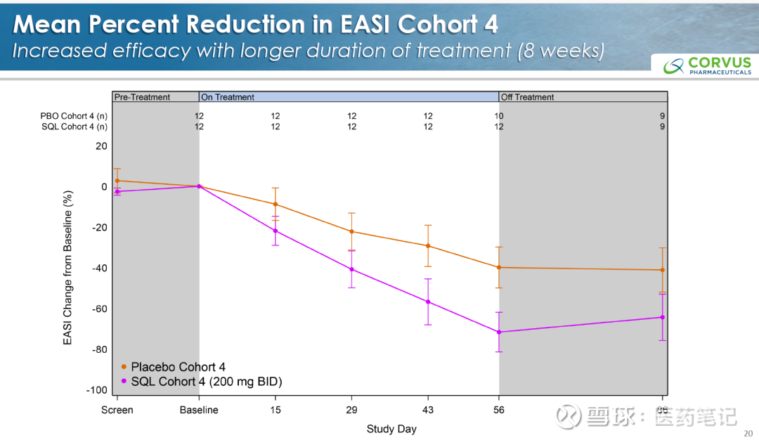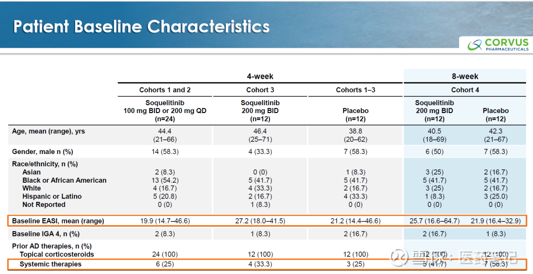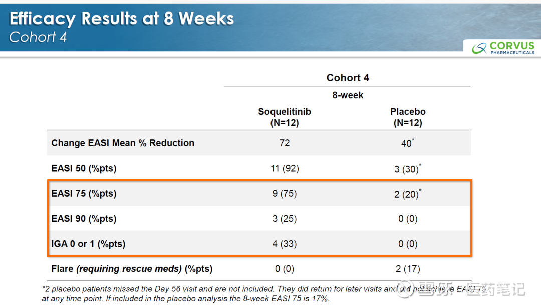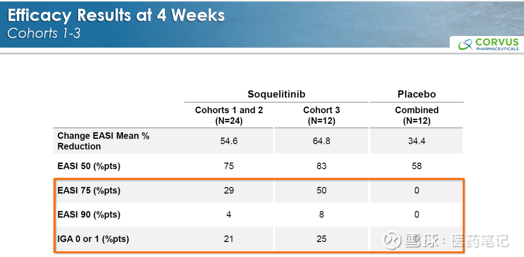 此次更新的队列4数据,治疗8周ESAI75为75%,EASI90为25%,IGA 0/1为33%。
