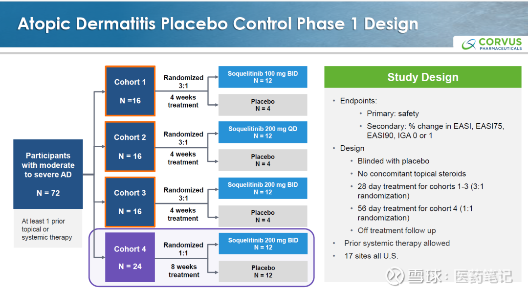 Soquelitinib此次更新了一期临床队列4的数据,临床方案设计如下。