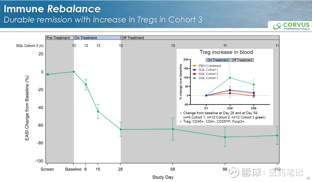 队列3治疗4周后停药,疗效持续,与持续的Treg增加相关。